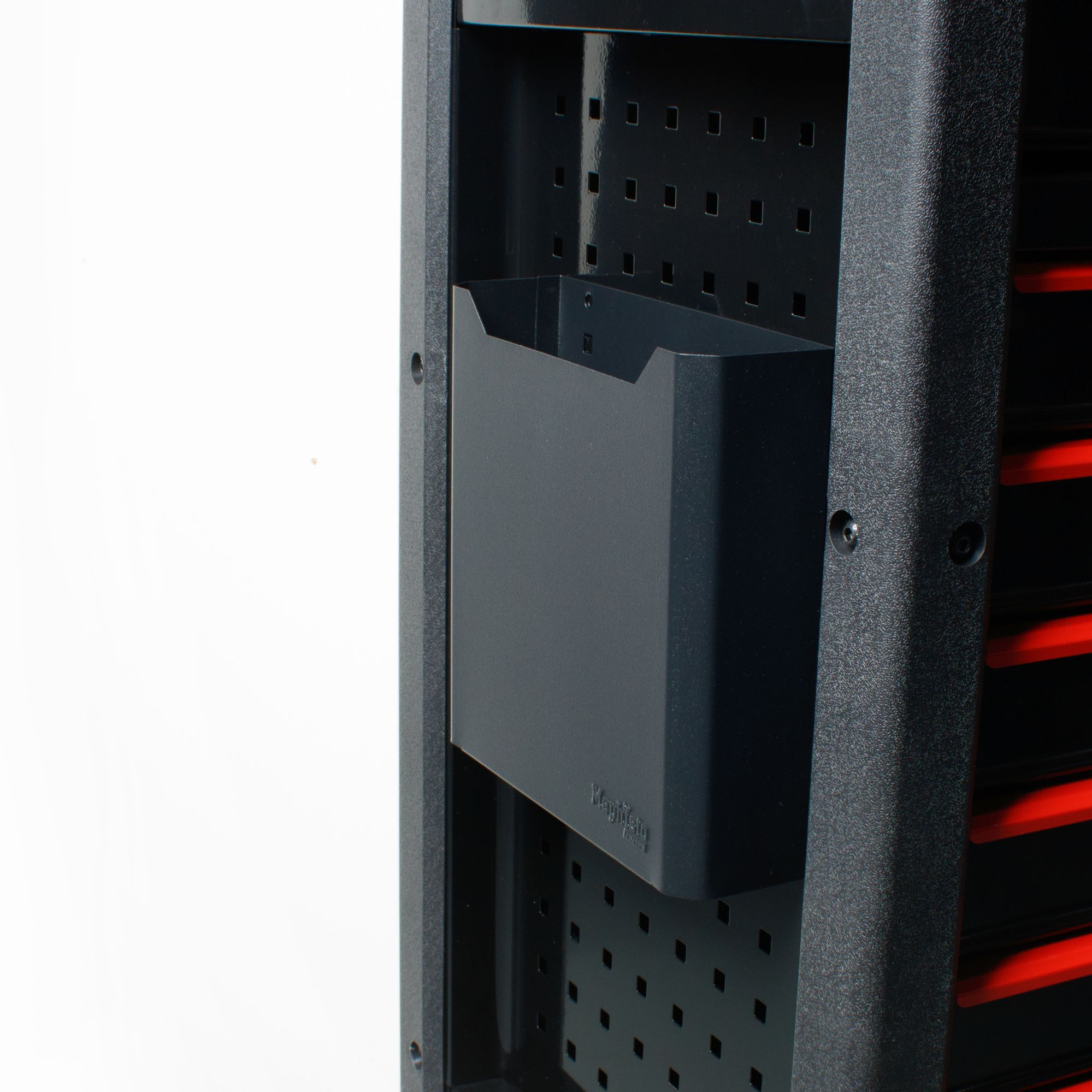 Für unsere Mephisto-Werkzeugwagen 71006, 71012, 71014 und 71015 bieten wir Ihnen dieses Zubehör an. Es kann an diese beiden Wagen in die seitlichen "Löcher" eingehängt werden. Die Zubehörteile sind aus hochwertigem, stabilem Stahlblech gefertigt und wurden anschließend pulverbeschichtet. Sie sind die optimale Ergänzung für Ihren Werkzeugwagen. Nachfolgend finden Sie die Maße der Einzelnen Bauteile.
