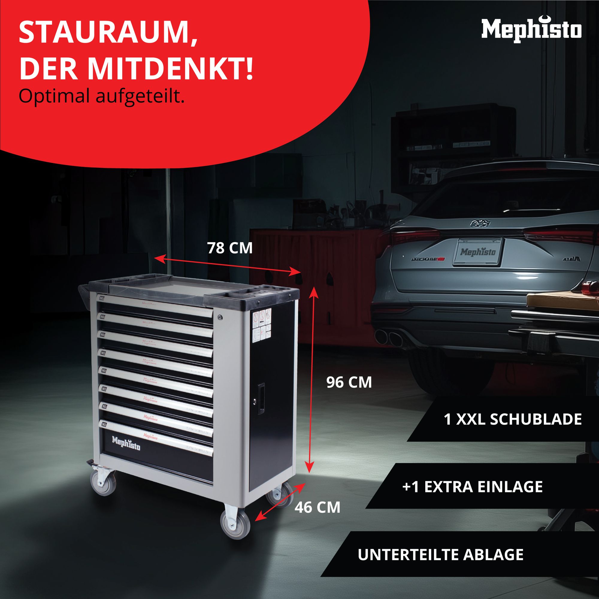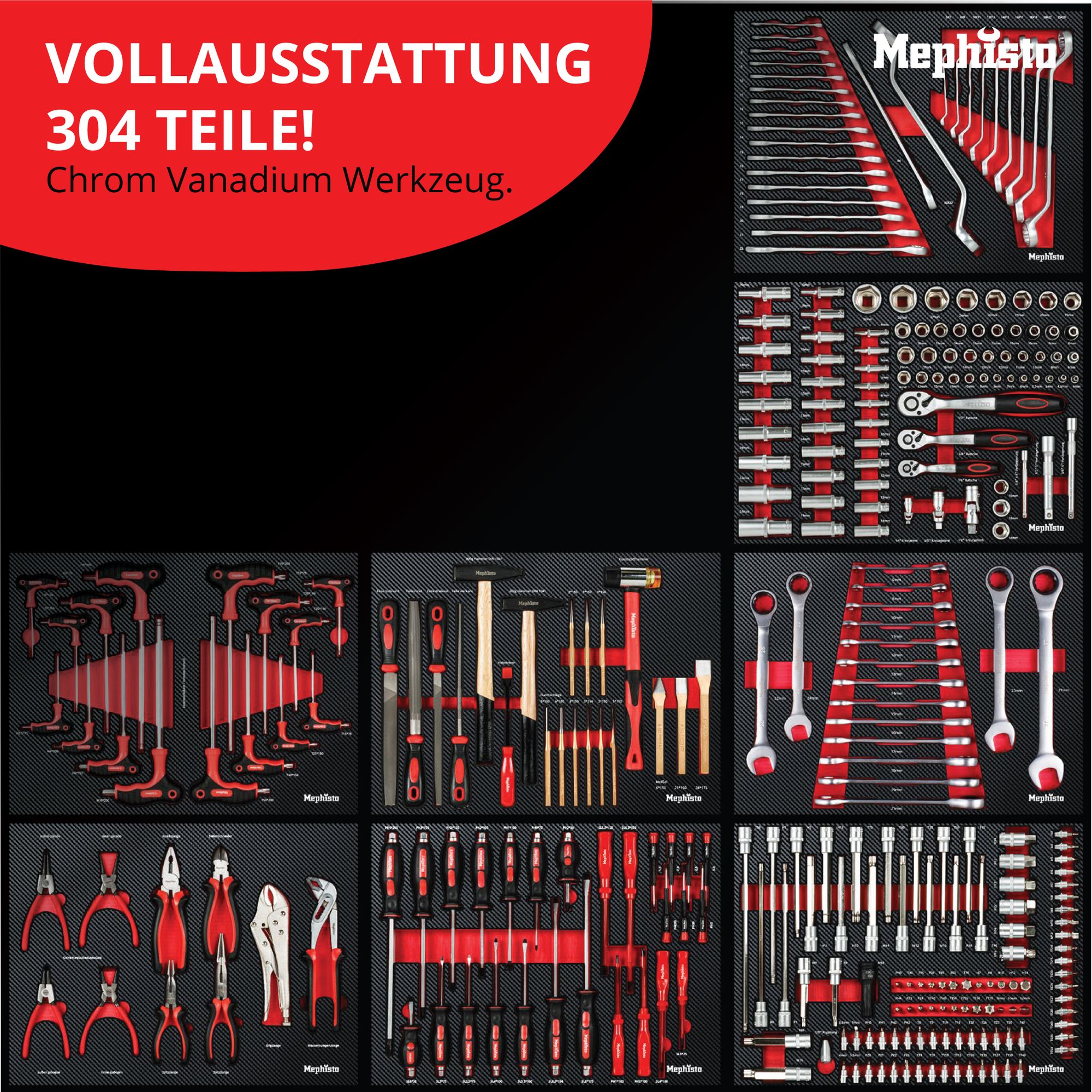 Premium XXL-Werkzeugwagen von Mephisto-Tools 8/8 Schubfächer mit Werkzeug (beste Ausstattung zum besten Preis)