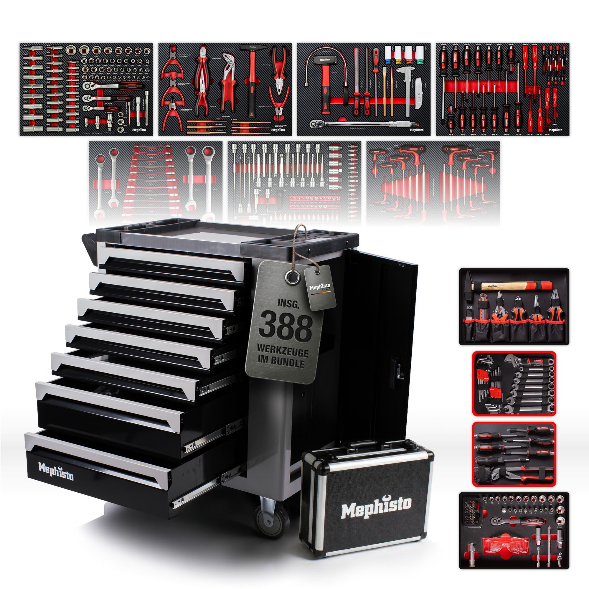 Bundle Premium XXL-Werkzeugwagen von Mephisto-Tools 7/7 Schubladen + Werkzeugkoffer mit Trolleyfunktion