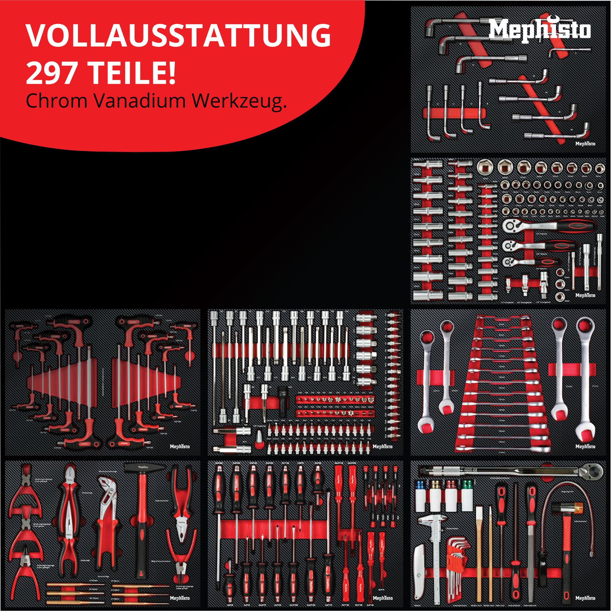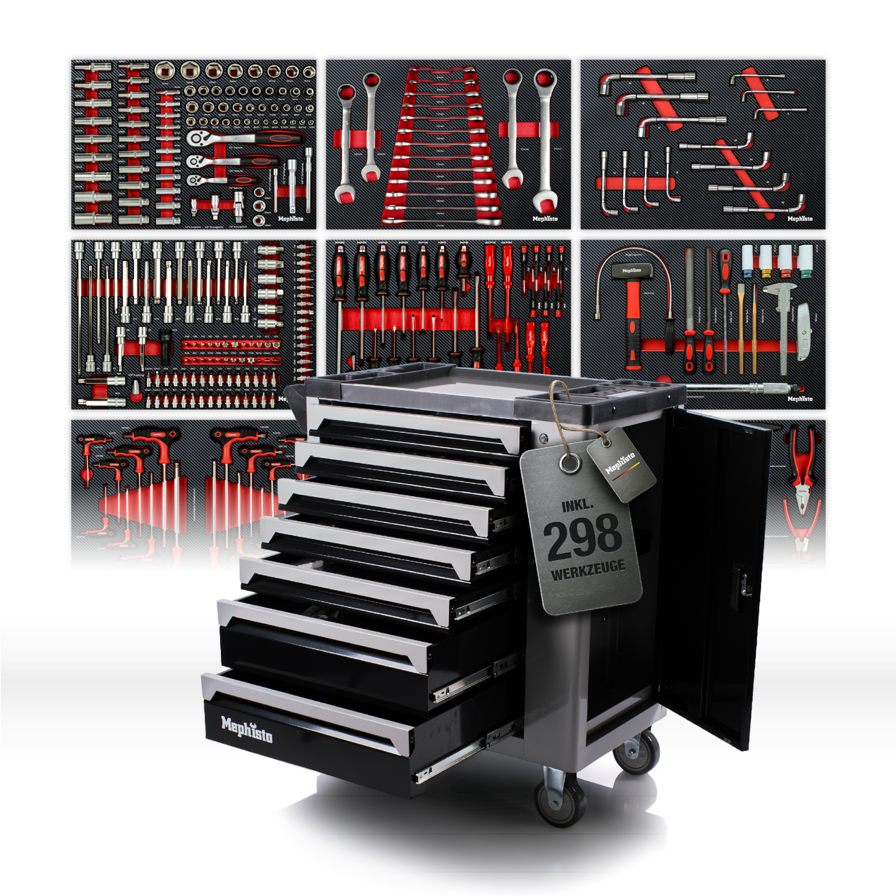 Mephisto Werkzeugwagen Premium mit 7 Schubladen inklusive Werkzeug zzgl. zusätzlicher Einlage mit Pfeifenkopfschlüssel