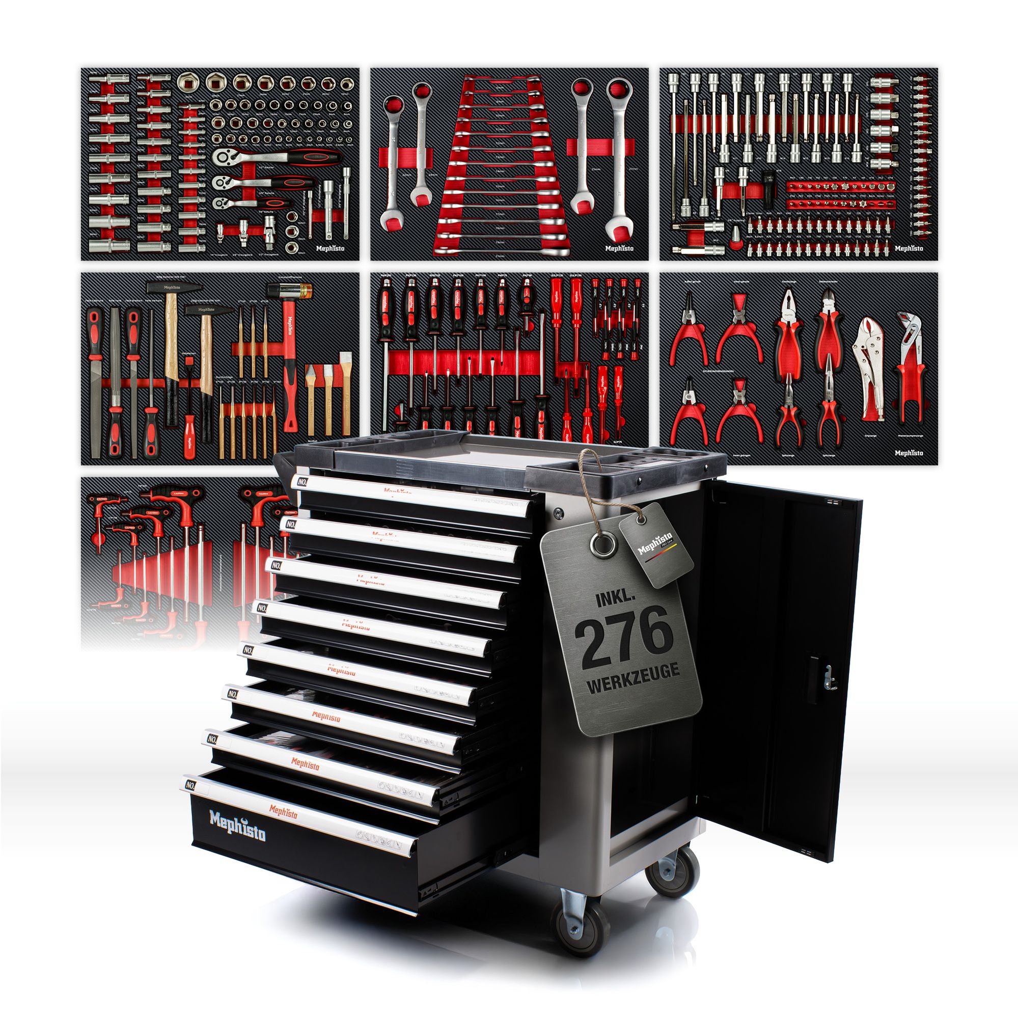 Werkzeugwagen XXL Premium von Mephisto-Tools 7/8 Schubfächern mit Werkzeug: Die beste Ausstattung zum besten Preis