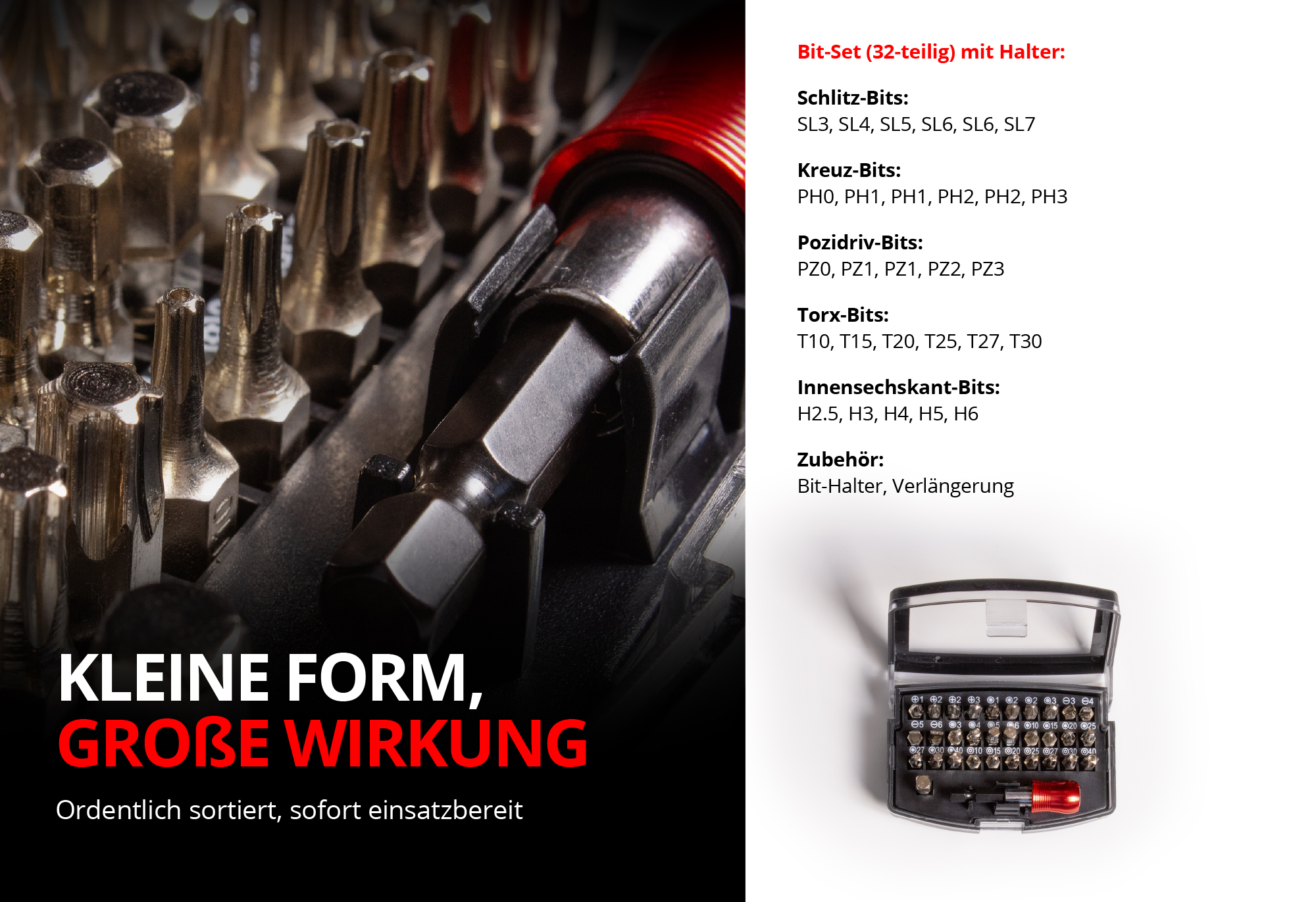 - Ein weiteres Detail ist der praktische Bitaufsatz-Adapter für diverse Akkuschrauber.