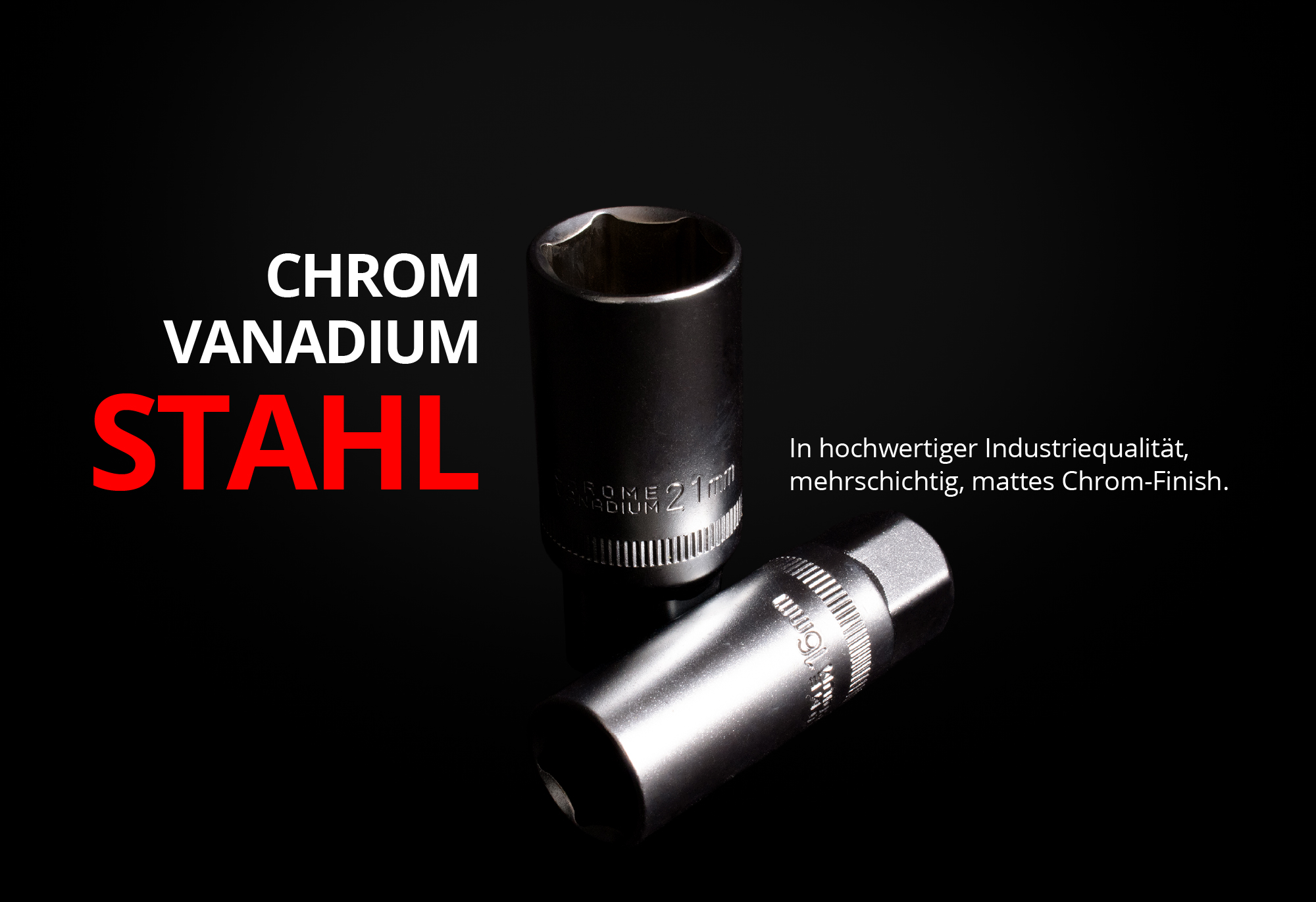 Ein Merkmal, welches unsere Werkzeuge zu absoluten Top-Produkten in Bezug auf das Preis-Leistungsverhältnis macht, ist die Verwendung von Chrom-Vanadium-Stahl. Zu beachten ist, dass es sich bei einer Reihe der günstigeren oder auch gleichpreisigen bzw. auch teureren Konkurrenzwerkzeuge um keinen Chrom-Vanadium-Stahl handelt. Hier wird oft für das Werkzeug, die deutlich günstigere und auch in ihren Eigenschaften, deutlich schlechtere Variante mit unlegiertem Stahl / Kohlenstoffstahl verwendet.