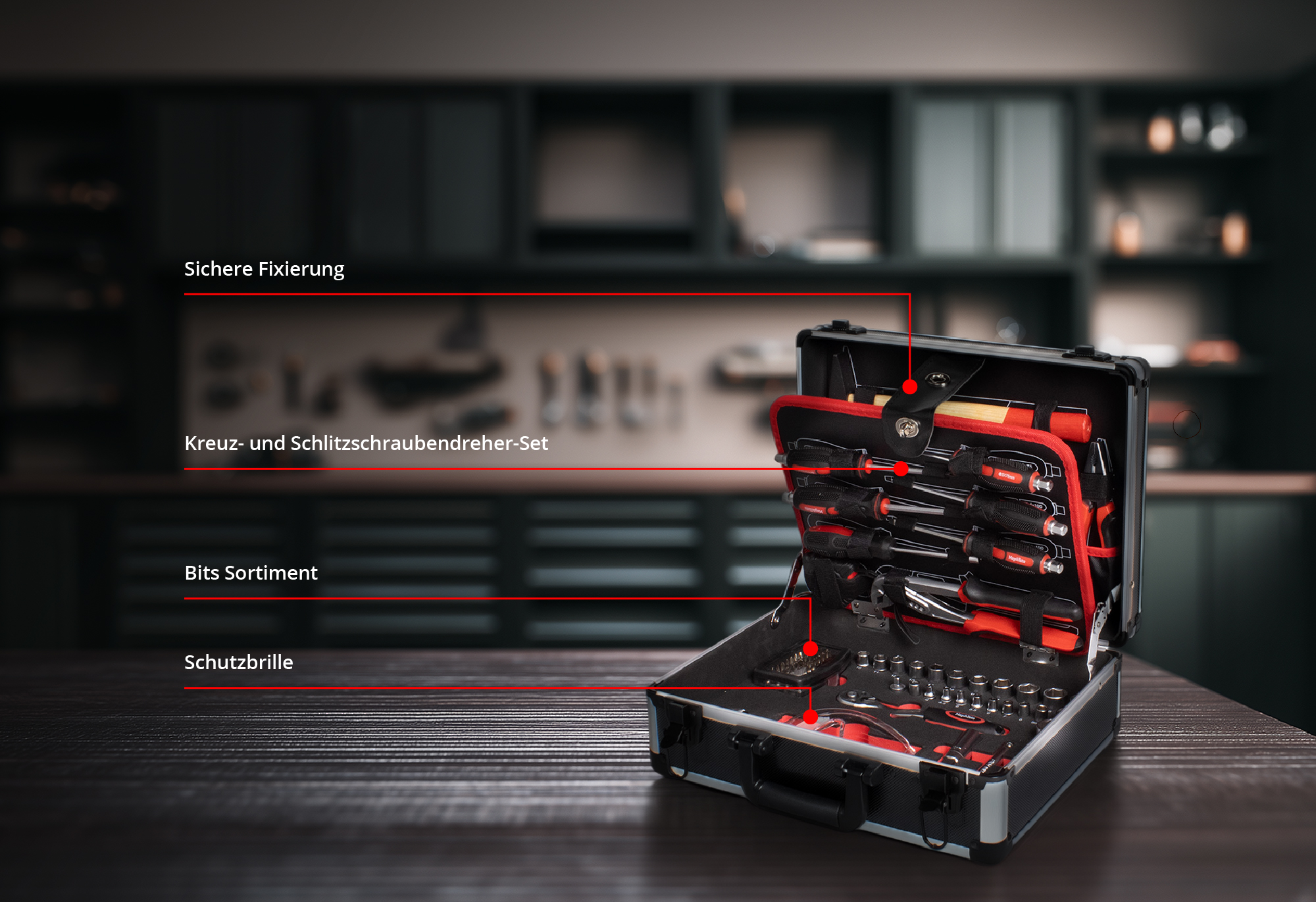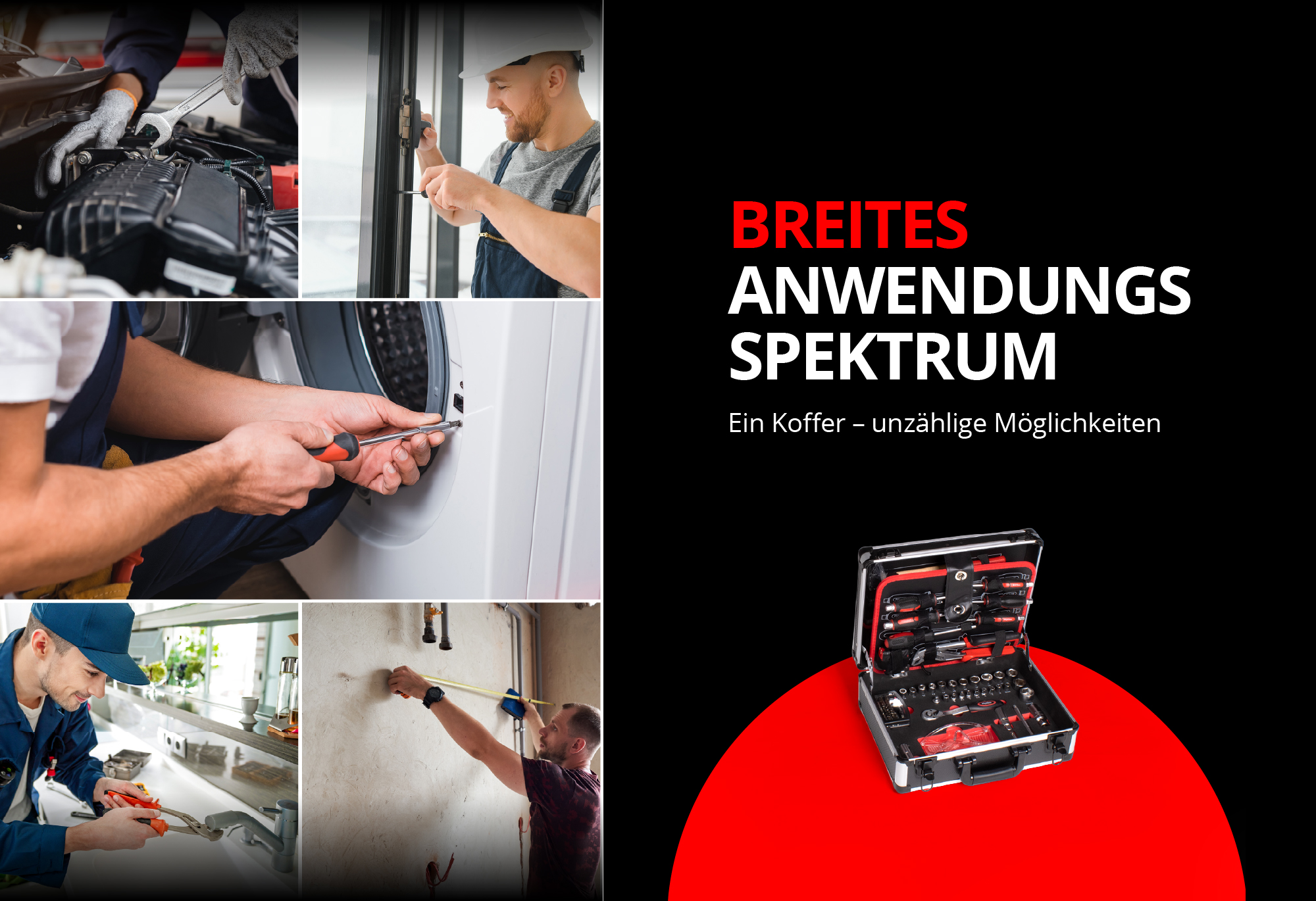 - Hochwertiger und robuster Werkzeugkoffer mit belastbaren Eckenschutz und Kantenschutz aus Aluminium.