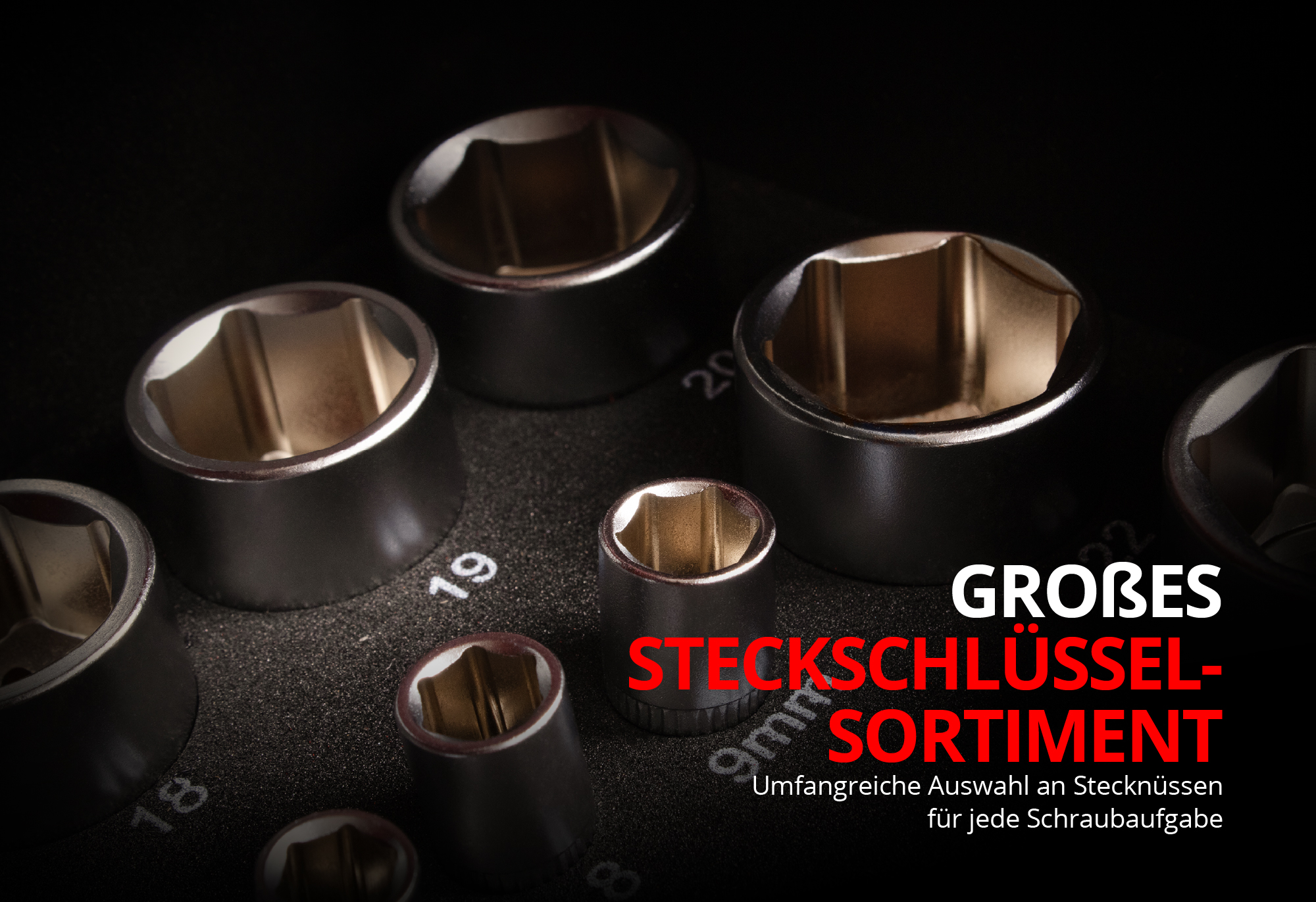 - 13x 3/8" Stecknüsse (10 / 11 / 12 / 13 / 14 / 15 / 16 / 17 / 18 / 19 / 20 / 22 / 24 mm)