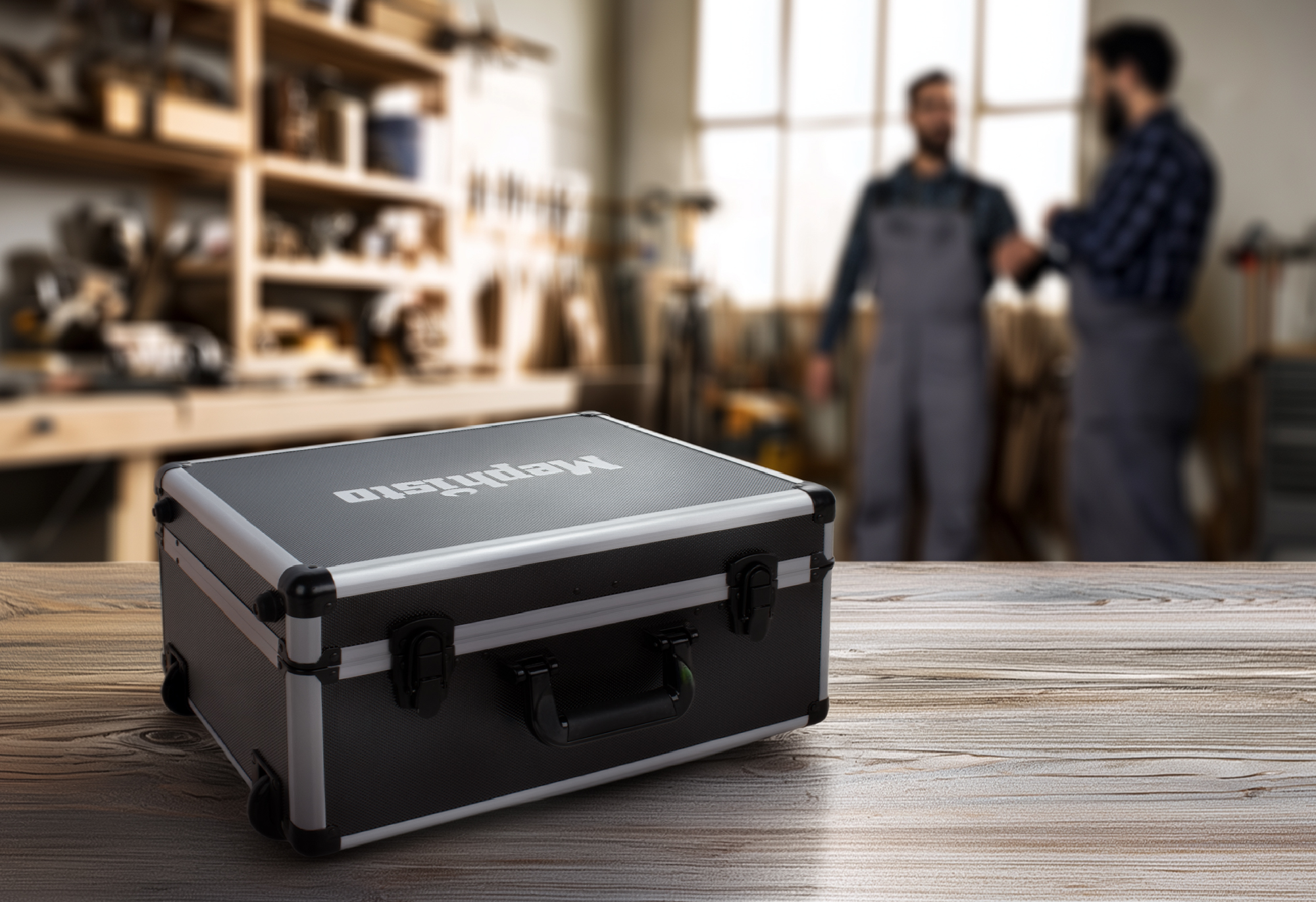 • Hochwertiger und robuster Werkzeugkoffer mit belastbaren Eckenschutz und Kantenschutz aus Aluminium.