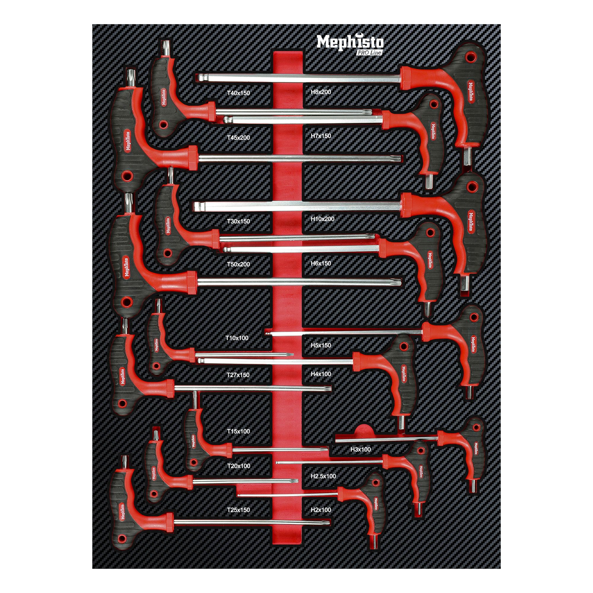 - 13 x Innensechsrundschlüssel: T8-T10-T15-T20-T25-T27-T30-T40-T45-T50-T55-T60-T70