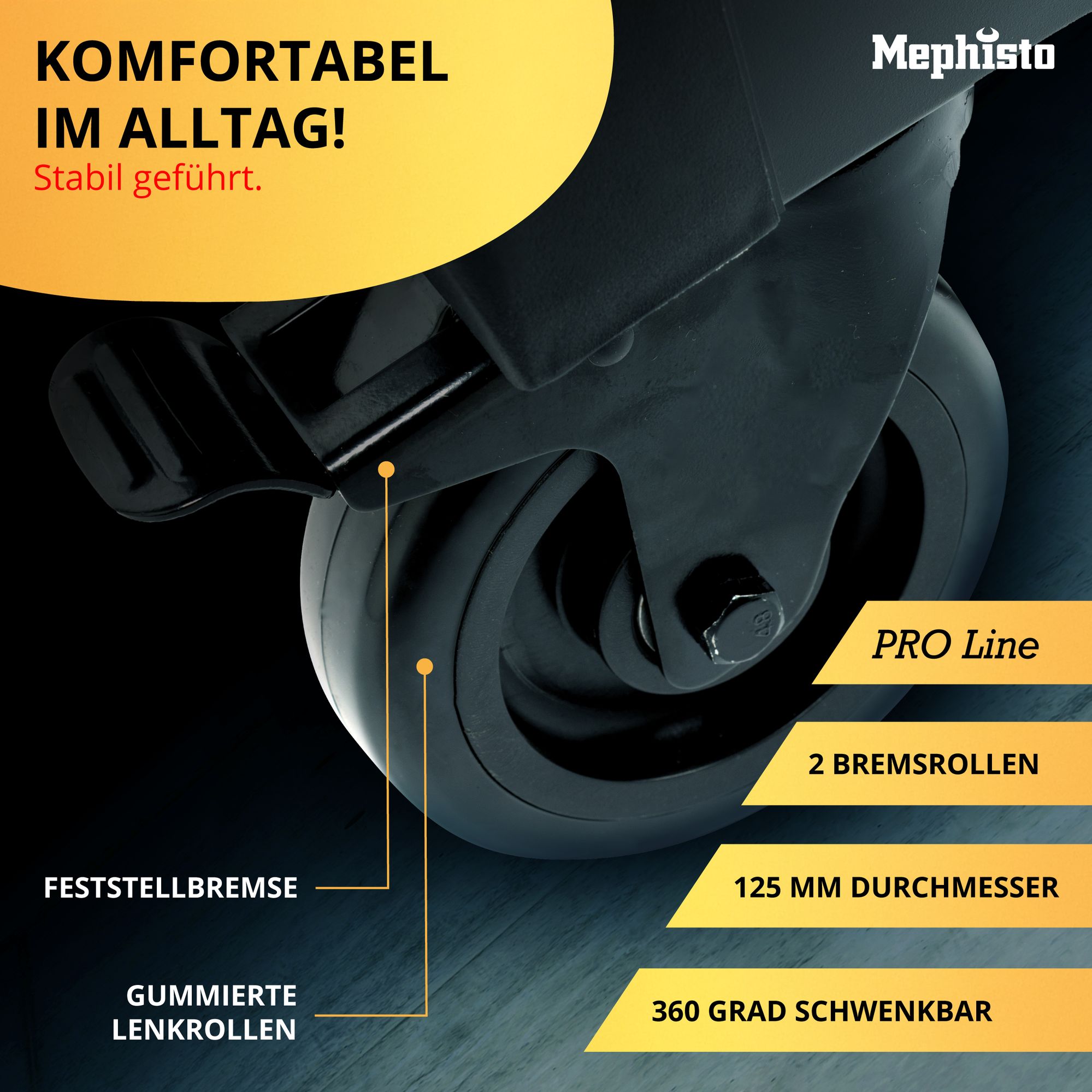 | Rollen | Ø 125 mm, 2 x Feststellbremse + 360° schwenkbar |