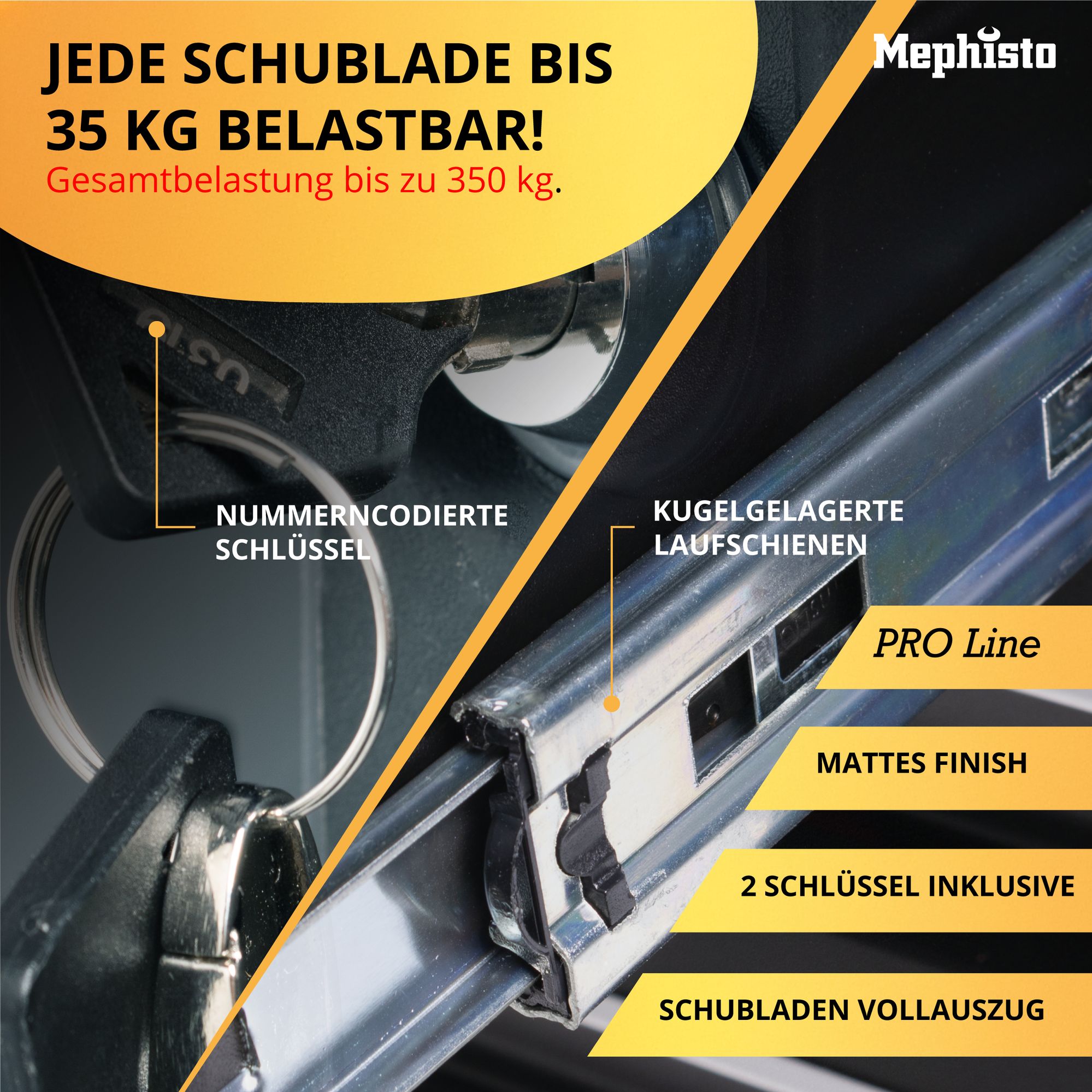 Pro Line "Big Black" Werkzeugwagen von Mephisto-Tools 9 Schubfächer exkl. Werkzeug