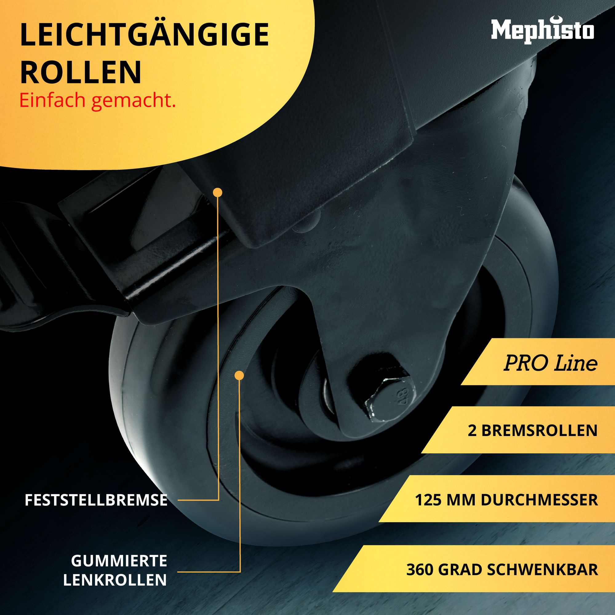 | Rollen | Ø 125 mm, 2 x Feststellbremse + 360° schwenkbar |
