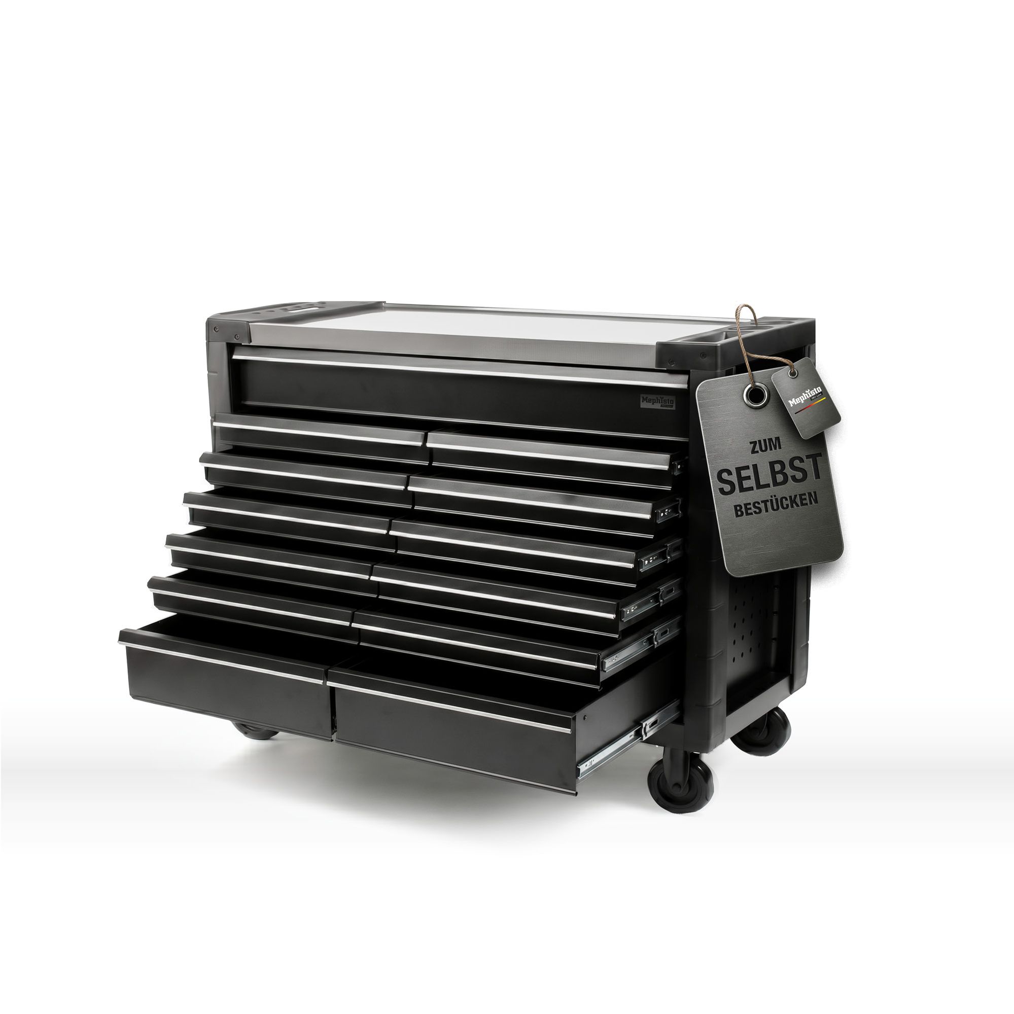Pro Line "Double Full Black" Werkzeugwagen von Mephisto-Tools 13 Schubfächer, leer