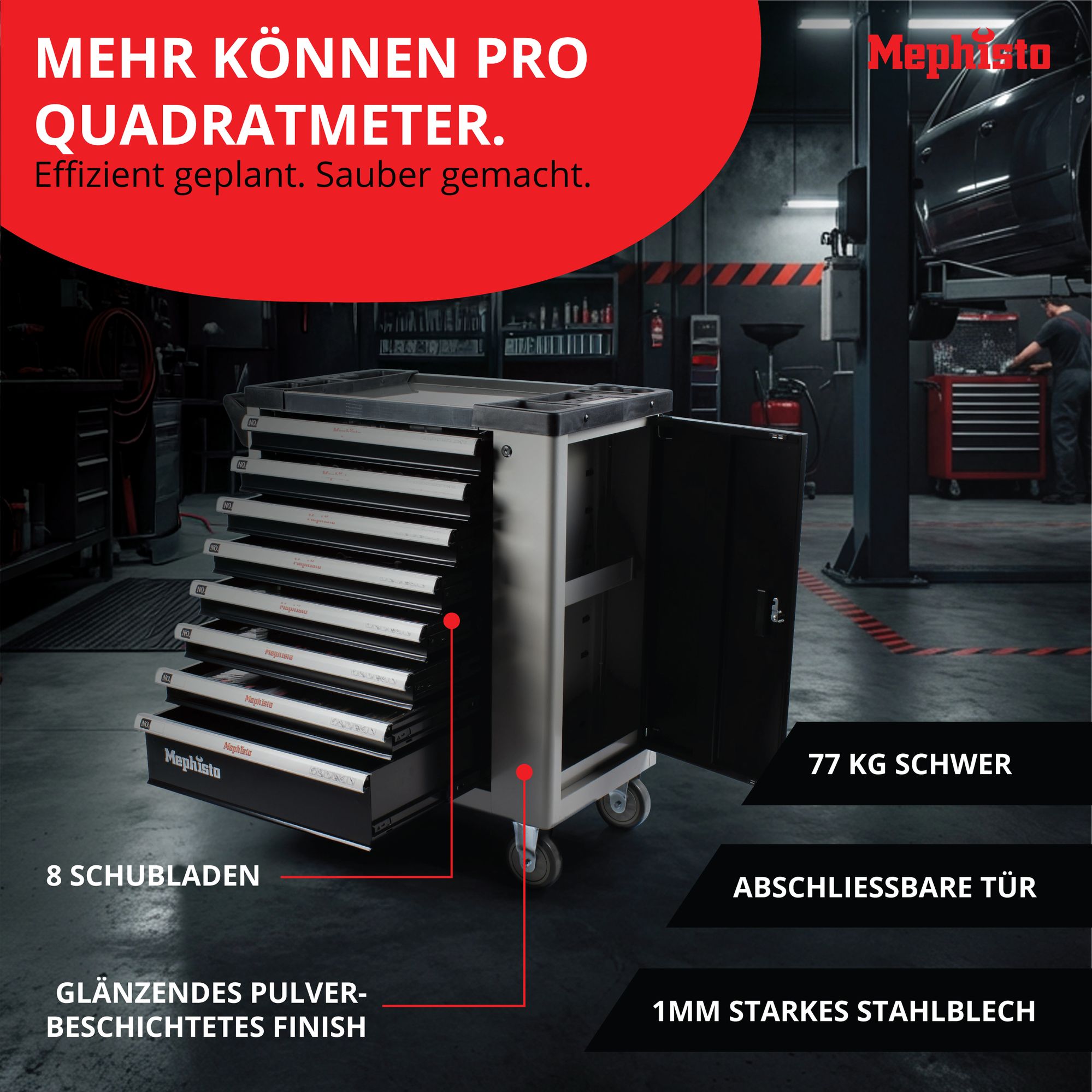 Premium XXL-Werkzeugwagen von Mephisto-Tools 8/8 Schubfächer mit Werkzeug (beste Ausstattung zum besten Preis)